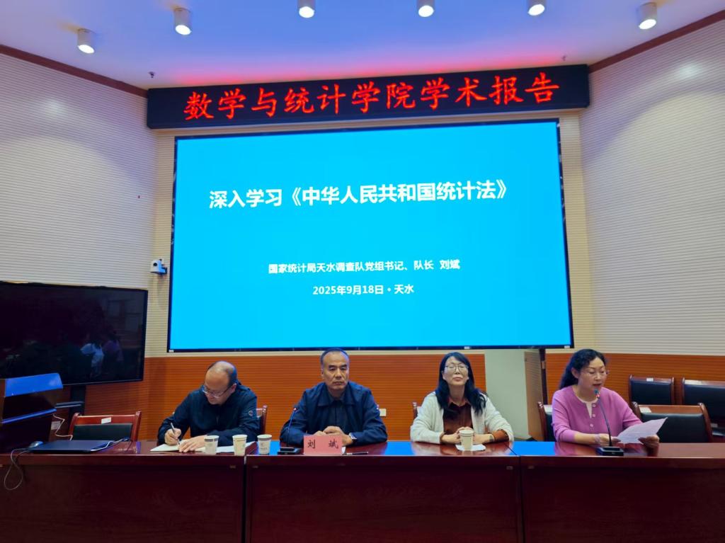 此次讲座旨在提升师生对统计法的认识,帮助学生理解统计工作的法律基础与职业道德,推动统计法治精神在高校教育中的落地与实践。据了解,数统学院和国家统计局天水调查队在学生实习实践、专业竞赛等方面已有较好的合作基础,接下来,双方将在科学研究和项目申报等方面探索合作新路径,为学生培养和专业发展提供更好的平台。