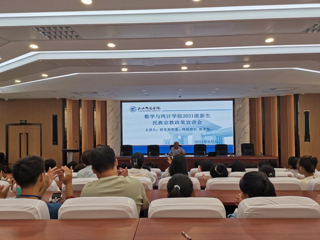 9月30日,学校党委常委、统战部部长崔亚军受邀为best365唯一官方网站2021级新生做党的民族宗教政策专题宣讲。学院党总支负责人主持宣讲会,学院党总支副书记、辅导员、班主任、理科预科班全体学生及2021级全体班长、团支部书记、学生代表共100余人参加了宣讲会。