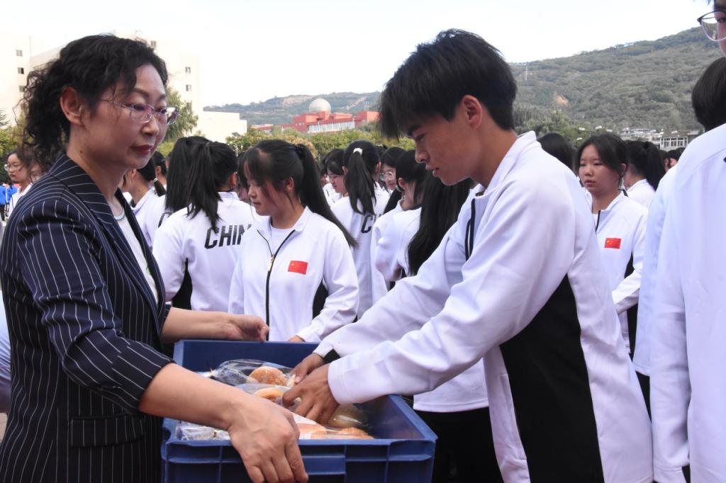 在慰问过程中,学院领导还向新生们送上了慰问品。