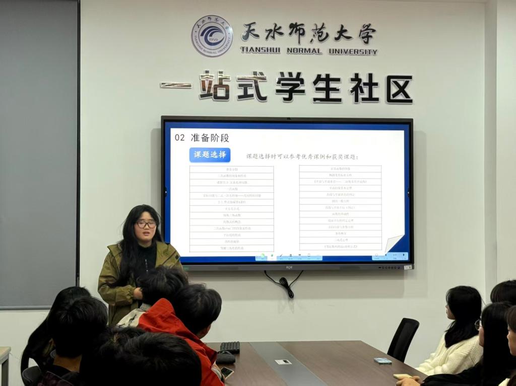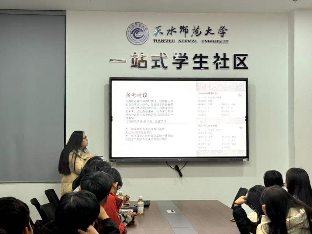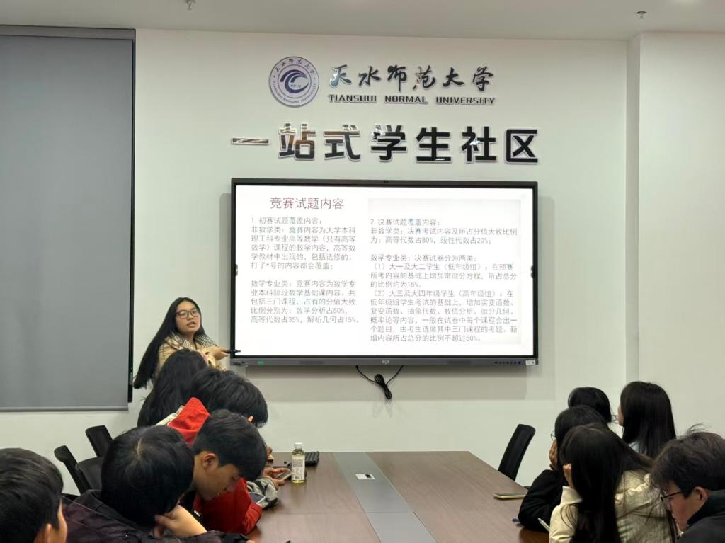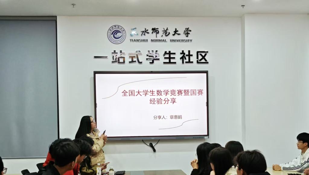 分享会上,林甘露同学以多次在高校师范生数学教学技能竞赛的经历,从“教学技能比赛分类、准备阶段、注意事项”三个方面介绍了师范生教学技能大赛的备战策略。章惠娟同学以全国大学生数学竞赛省赛和国赛经验从“竞赛简介、备考建议、考前突击、学习习惯”四个方面讲述了如何将学科专业知识应用到全国大学生数学竞赛,提升竞赛竞争力,突破难点、精准发力,在考场上发挥最佳水平。