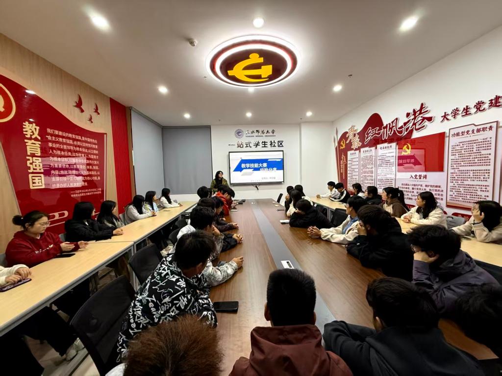 10月23日,由党委学生工作部主办,best365唯一官方网站承办的“朋辈思政共学课堂”在“一站式”学生社区举办。best365唯一官方网站在全国大学生数学竞赛、全国大学生数学建模竞赛、高校师范生数学教学技能竞赛中获奖两名学生与四十余名学生代表一起分享交流参赛经验。